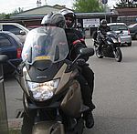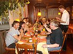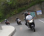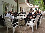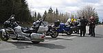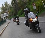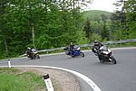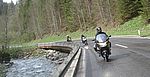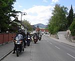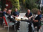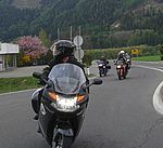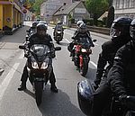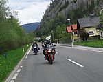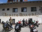 In Pernitz machen wir einen kurzen Stopp – glauben wir!! Denn da entdeckt Franz – diesmal eine Schraube - in seinem Hinterreifen. Der Reifen wird von Walter repariert und dann geht es ohne besondere Vorkommnisse über die Kalte Kuchl – Ochsattel – St. Ägyd – Gscheid – Mariazell – die Wildalpen bis zur Tankstelle in Wildalpen. Dort wird getankt und geraucht, bevor wir über das Gesäuse bis Admont weiterfahren. Im Admonter Hof gönnen wir uns das verdiente Mittagessen und weiter geht es über die Kaiserau nach Trieben und die Hohen Tauern bis Judenburg und dann über das Gaberl. Unsere Route führt uns weiter nach Köflach – über die Pack und Hebalm nach Deutschlandsberg. Nach 441 km kommen wir in Eibiswald im Klöpferkeller an, wo wir übernachten werden. Beim Abendessen besuchen uns Berndt und Karoline mit ihrer Schwester Susi und Schwager Manfred. Der lustige Abend wird lang und feucht. Vor dem Schlafengehen tratschen wir noch mit ein paar „Gasradlern“ und Walter tauscht sein Gmoa Biker Clubleiberl gegen ein Gasradler-Clubleiberl ein.