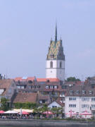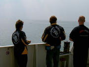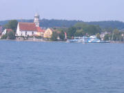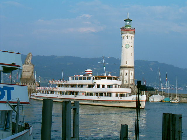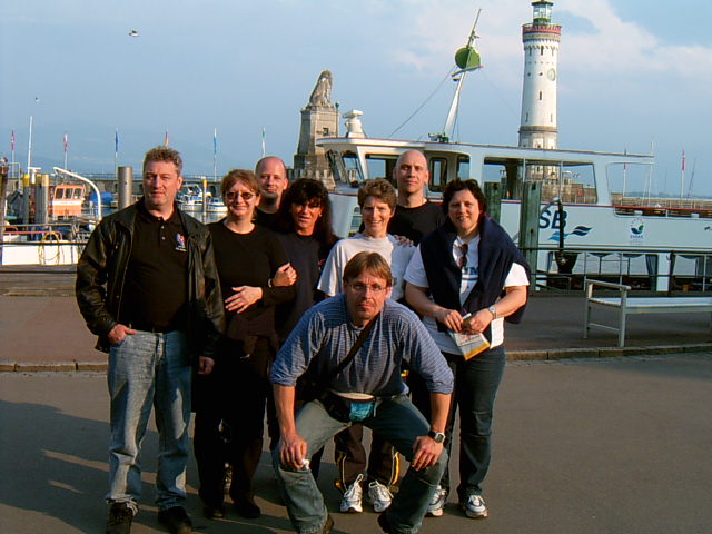 Erster Regentag. Nach einer kurzen Beratung organisiert Heini das Auto von Stefan und so können alle mit den beiden vorhandenen Autos ins Zeppelinmuseum fahren. Gerhard und Dieter eher unbequem im Laderaum zwischen den Bierkisten, aber immerhin besser als zu Fuss. Beim Verlassen des Pfändertunnels scheint die Sonne und so macht Gerhard den Vorschlag, eine Bodenseerundfahrt mit dem Schiff zu machen. Und damit einem auf dem Schiff ein bisschen schlecht werden kann, wird vorher noch etwas gegessen. Der kleine Imbiss dauert aber so lange, dass Susi und Freddy zu spät zum Schiff kommen. Heini blockiert aber hartnäckig den Landesteg und so kann der Steg nicht eingezogen werden, bevor alle an Bord sind. Der Kapitän weiß, was er Bikern schuldig ist und bringt sein Schiff bei einem waghalsigen Ausweichmanöver in eine filmreife Schräglage, und opfert eine Menge Geschirr, das sich nicht mehr in den Fächern halten kann. In Friedrichshafen teilt sich die Gruppe. Einige fahren nach Lindau und besichtigen die wunderschöne Altstadt mit den Fachwerkhäusern und die Kirche. Auf dem Rückweg haben Gerhard und Emanuel ein schlimmes Erlebnis, sie beobachten eine junge Frau, die ihren zweijährigen Sohn mit der Faust mehrmals auf den Kopf schlägt. Sie verfolgen gemeinsam mit einer Touristin die junge Familie und verständigen die Polizei, die auch prompt kommt. |